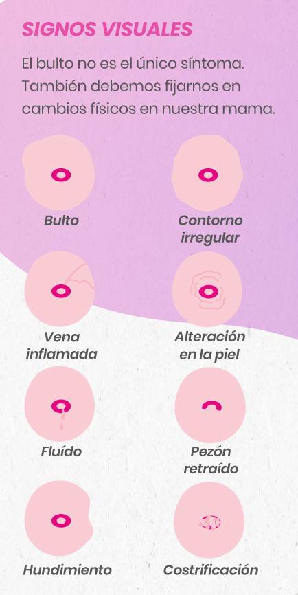 - Recomendamos realizar el autoexamen en la ducha y frente a un espejo. Al ducharte, el jabón puede ayudarte a suavizar la piel y tener un mejor tacto al revisar tu mama. Por otro lado, frente al espejo puedes examinar visualmente cambios en tus mamas. Alguno de los signos de alerta a tener en cuenta son: